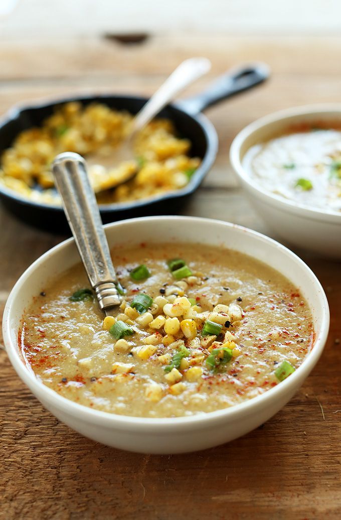 whole kernel corn, garlic, onions, red potatoes, green onions, parsley, vegetable base, almond milk, nutritional yeast, old bay, olive oil, salt & pepper